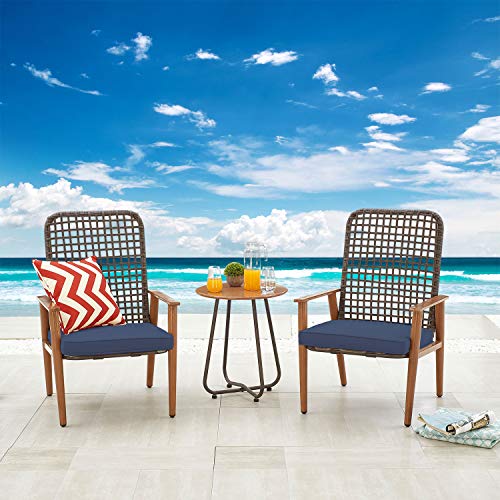 Festival Depot 3 Pieces Patio Outdoor Bistro Set Wooden-Color Armchairs with Cushions Metal Iron Side Table Cafe