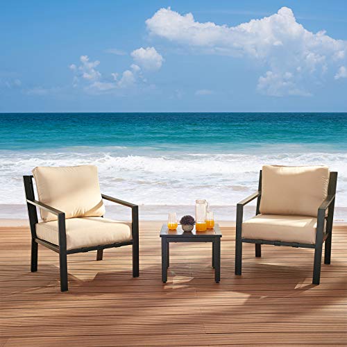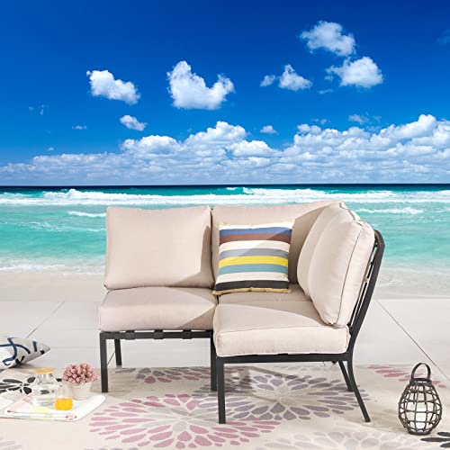 Festival Depot 3 Pieces Patio Conversation Set Sectional Corner Chair with Thick Cushions All Weather Metal Outdoor Furniture for Deck Porch Garden, Beige