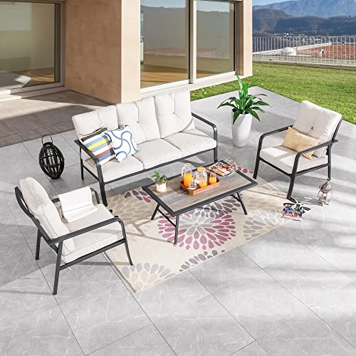 Festival Depot 4Pcs Outdoor Furniture Patio Conversation Set All Weather Black Metal Armchair Loveseat with Seat and Back Cushions, 3-Seating Chair, Rectangle Coffee Tables for Deck Lawn Garden