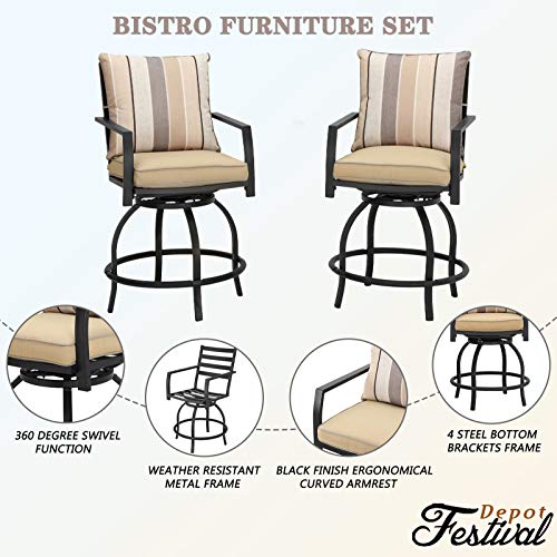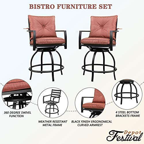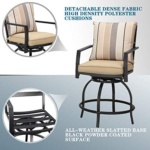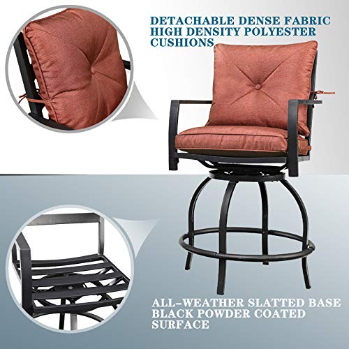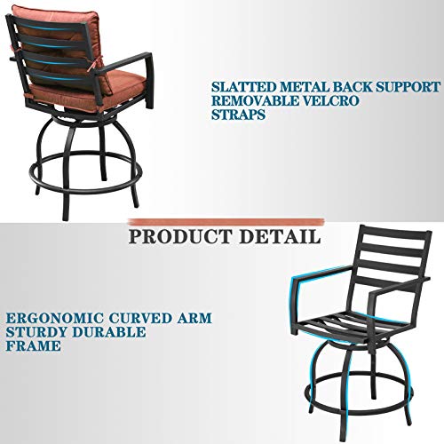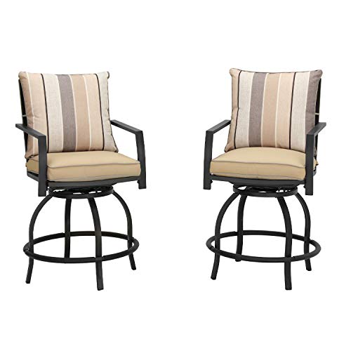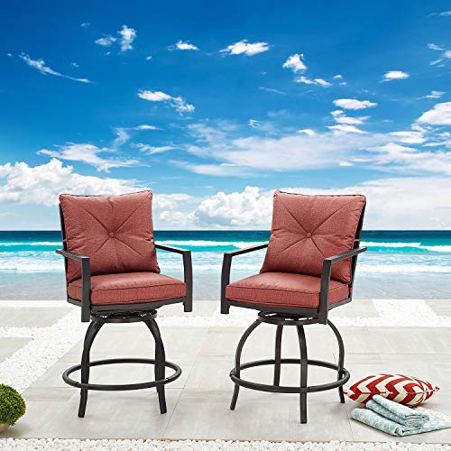 Elegant 2 Piece Patio 360° Swivel Bar Chair Set with Armrests and Cushioned Seats