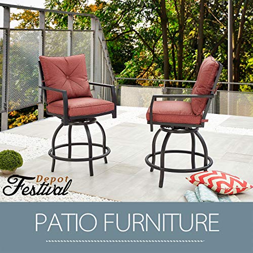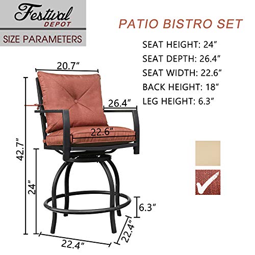 - Dimensions & Assembly Chair: 22.6" D x 26. 4" W x 42.7" (H). This patio dining set includes 2 swivel armchairs. All hardware and accessories included, following the detailed instructions, you can quickly finish installation.