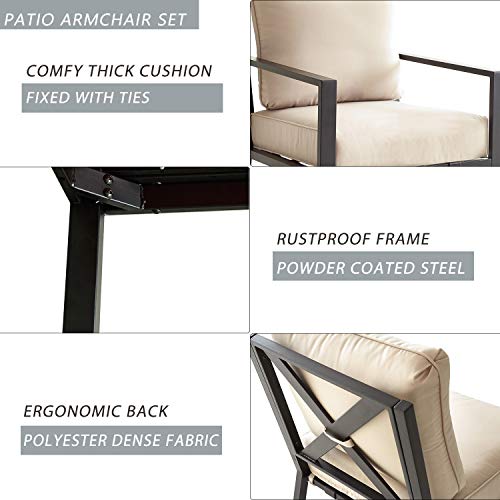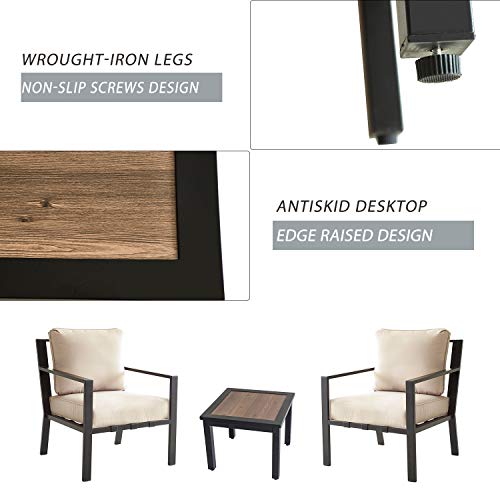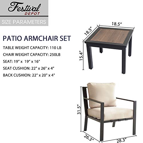 Festival Depot 3 Pieces Patio Outdoor Bistro Set Armrest Sofa Chairs with Seating Back Cushions Metal Side Coffee Table Garden