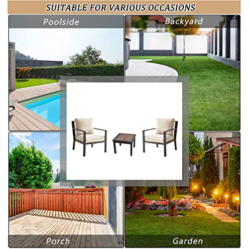 - Modern Design This 3pcs Conversation set has simple and elegant design. The natural style is ideal for any garden, backyard porch, patio or outdoors. Enjoy your leisure time or taste afternoon tea with someone you love.