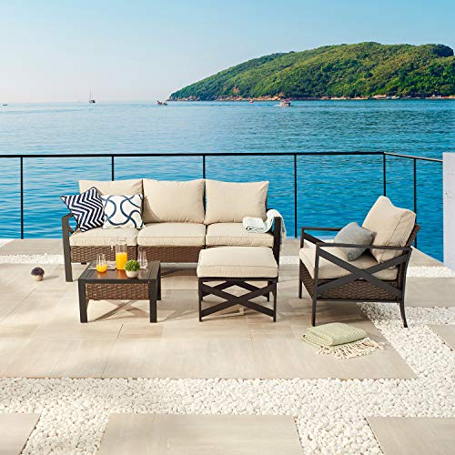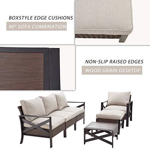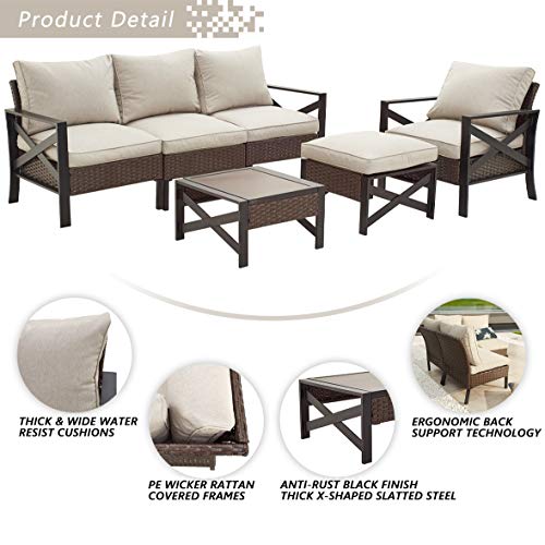 - Modern Design This 5pc sectional sofa set has simple and elegant design. The natural style is ideal for any garden, backyard porch, patio or outdoors. Enjoy your leisure time or taste afternoon tea with someone you love.