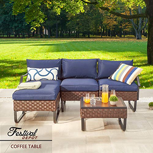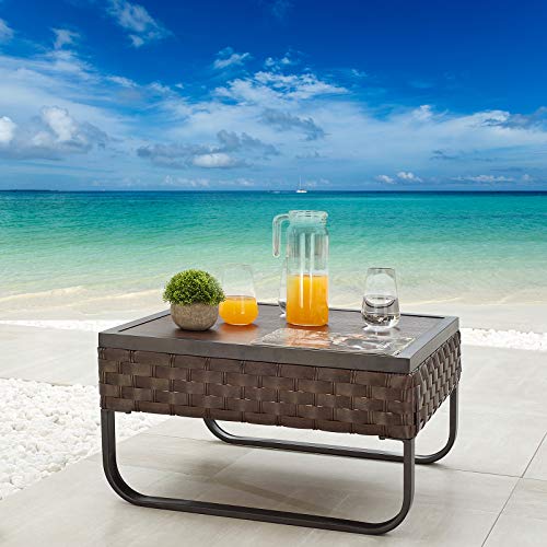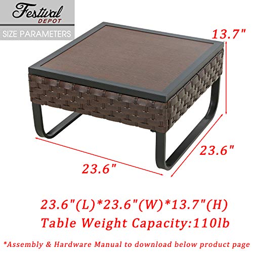 Details: Description Festival Depot Coffee Dining Bistro Outdoor Side Patio Furniture Table Add Fun to Your Life When you are outdoors with friends or with your family. You always want to have such comfortable and stylish outdoor furniture. Our Festival Depot store will create a high quality, stylish and comfortable home brand.Product design has always followed the concept of environmental protection and durability, using good materials, produce with good quality.Listen to every piece of customer advice.Continuous improvement and perfection.The life of the product is greatly improved.Bring better life experience to users. Features All- weather PE wicker covered-easy to clean Lightweight aluminum-plastic plate table top Sturdy & Elegant Powder-coated steel frames Unique U-shaped-leg design Desktop wood grain style Super Easy to Assemble Dimensions : 23.6"(L)*23.6"(W)*13.7"(H) Weight Capacity: 110 lb Details Assembly Required :Yes Commercial/Residential:Residential Frame Finish:Black Frame Material:Steel Product Weight (lb.) : 17 lb Shape:Square Wicker color:Brown Tabletop Material:Aluminum-plastic Tabletop Style:Wood grain Notice : Product care: wipe clean with a wet non-color cloth, do not use strong liquid cleaners