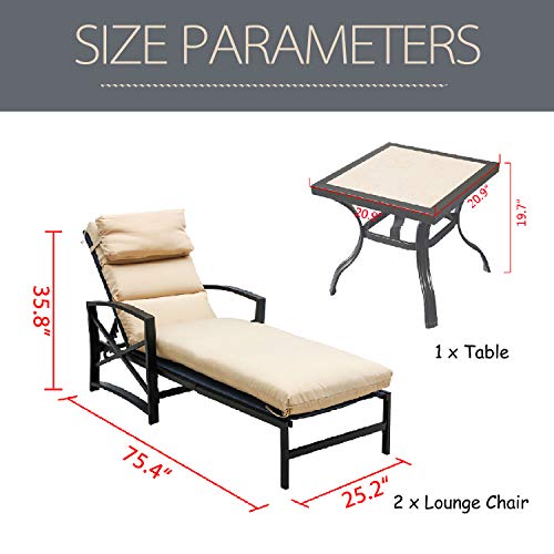 - ‹ېDIMENSION‹ÛÔ Table: W 20.9" x L 20.9" x H 19.7" , Chaise Lounge Chairs: W 26.8" x L 68.9" x H 33.9". Perfect for yards, patios, gardens, porches or outdoors.